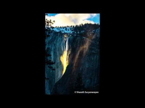 A natural phenomenon which mesmerizes viewers once a year happens in Yosemite. The angle of light falling on this seasonal waterfall during sunset makes the falls turn golden and make it look like lava or molten gold flowing from the top of the cliff near El Capitan. This happens during second half of February usually between 15 and 25. To see this quite a few things have to be perfect; no clouds to the west, enough snow over El Capitan and the right temperature for the snow to melt and create this waterfall.
